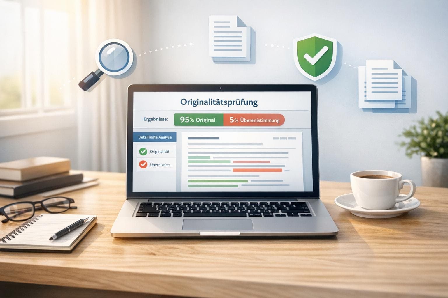 Vergleich der fünf besten KI-Tools zur Originalitätsprüfung: Funktionen, Genauigkeit, Sprachunterstützung (Deutsch) und Preise für Studierende, Bildung und Unternehmen.