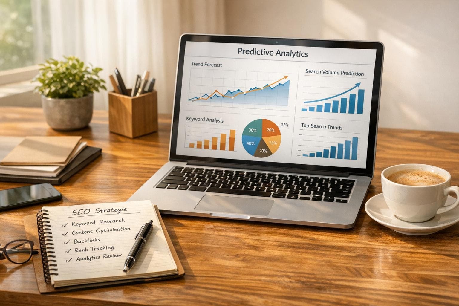 Mit Predictive Analytics erkennen Sie Suchtrends und Nutzerintentionen frühzeitig, optimieren Content-Planung und steigern organischen Traffic sowie ROI.